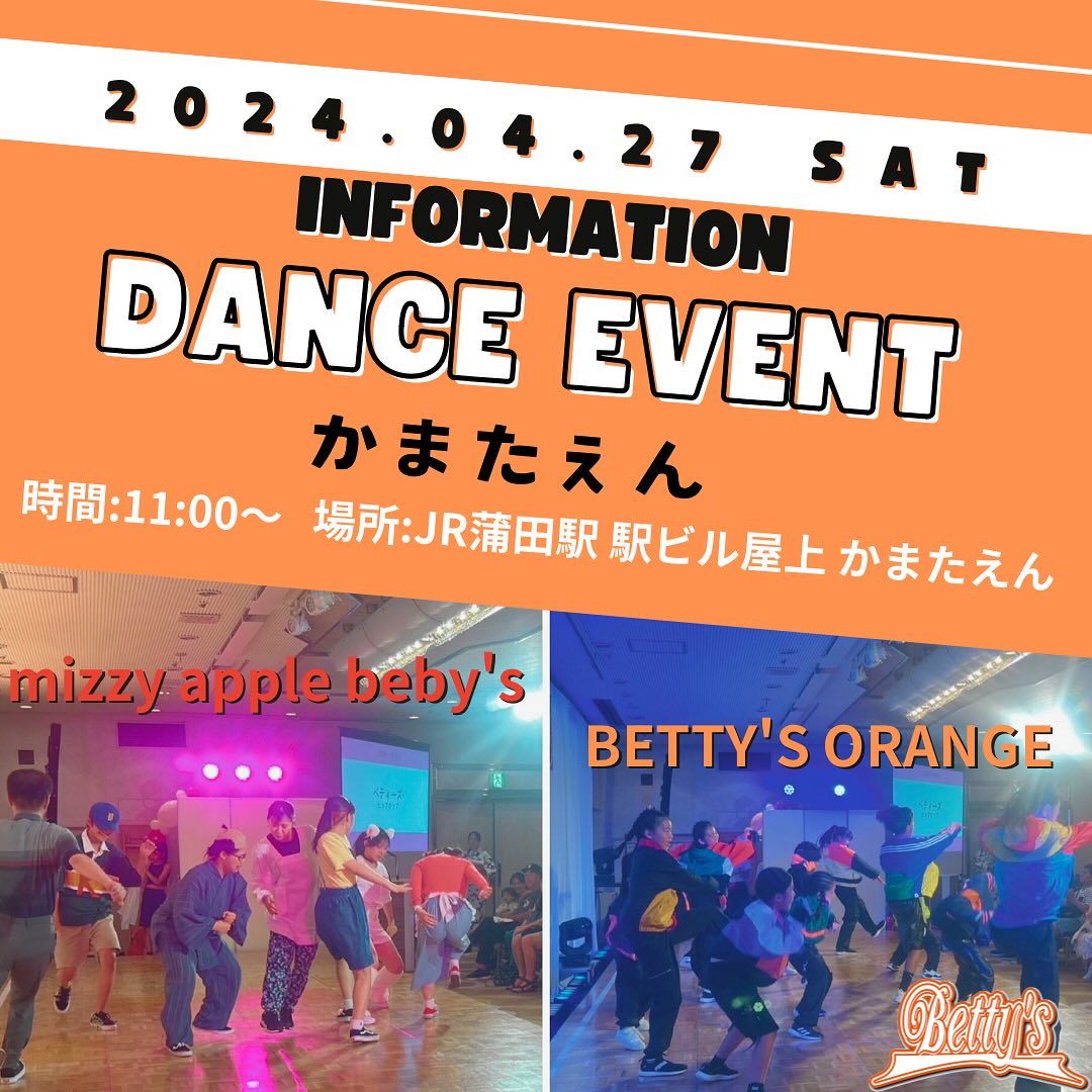 蒲田駅 駅ビル屋上かまたえんで BETTY’S ORANGEイベント出演!!! 公開日:2024年4月26日 キッズダンス こんにちは😆 上着がいらない季節になってきました〜✨ さぁ皆さんにお知らせです- ̗̀📣 4月27日(土)明日に蒲田駅の駅ビル屋上かまたえんでBETTY’S OR […] 続きを読む